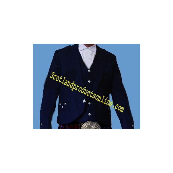 Argyll Kilt Jackets with vest (waistcoat) in dark navy blue color with one front button...