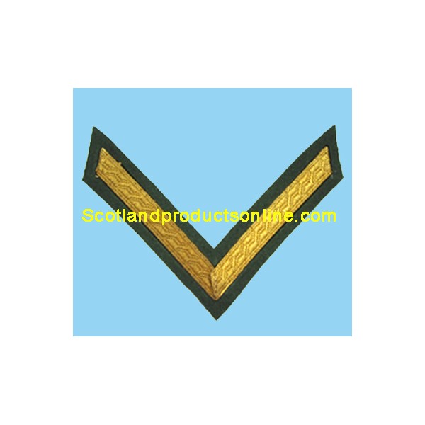 1 Bar chevron No1 (full size) with B&S lace in gold on rifle green melton cloth.