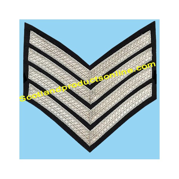 4 Bar chevron No1 (full size) with B&S lace in silver on black melton cloth.