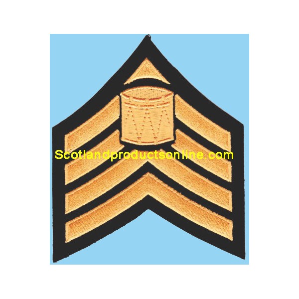 4 bar orange thread embroidery chevron with drum No1 (full size) on black melton cloth.