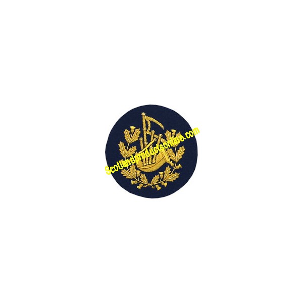 Pipe Major hand embroidery badge gold wire on blue. Use on doublet, tunic and jacket arm.