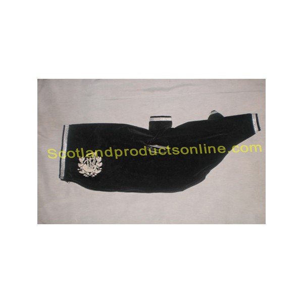 Bagpipe velvet bag cover with embroidery bagpipe badge with braid in silver color with defferent sizes.