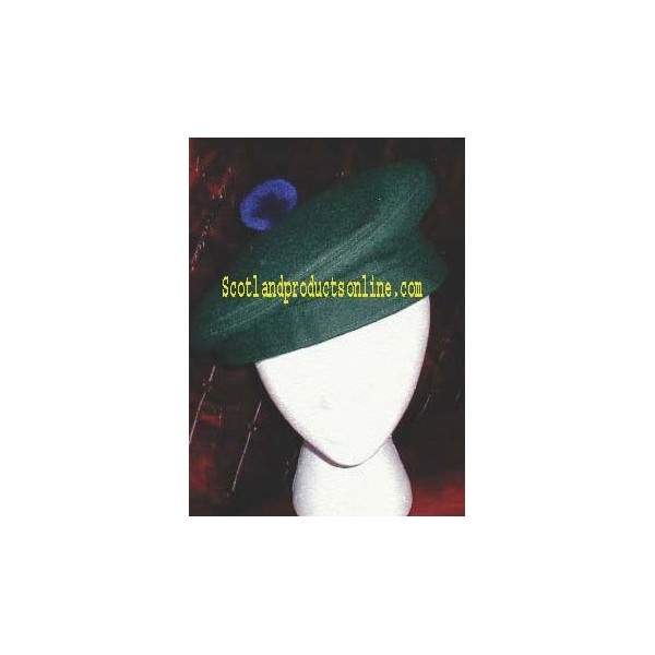Balmoral Scot Plain Hat in green color made in good quality wool with royal blue tam.