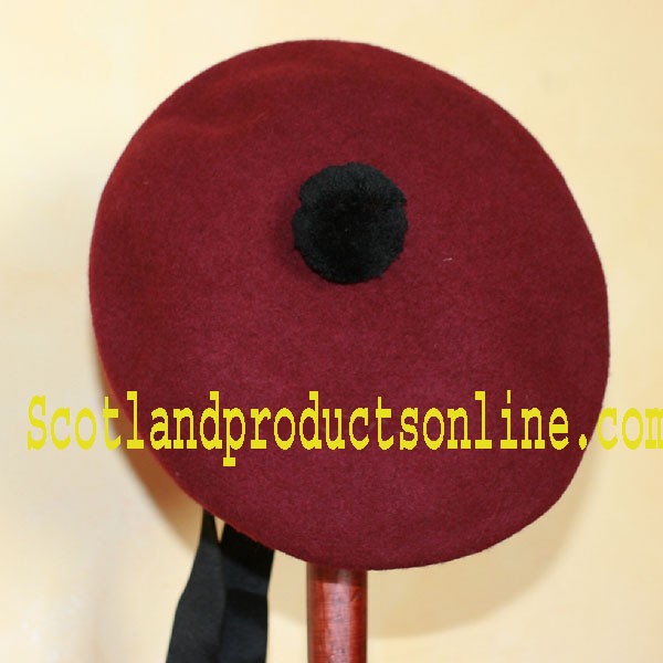 Scottish Plain Balmoral Hat in maroon color made in good quality wool with black tam.