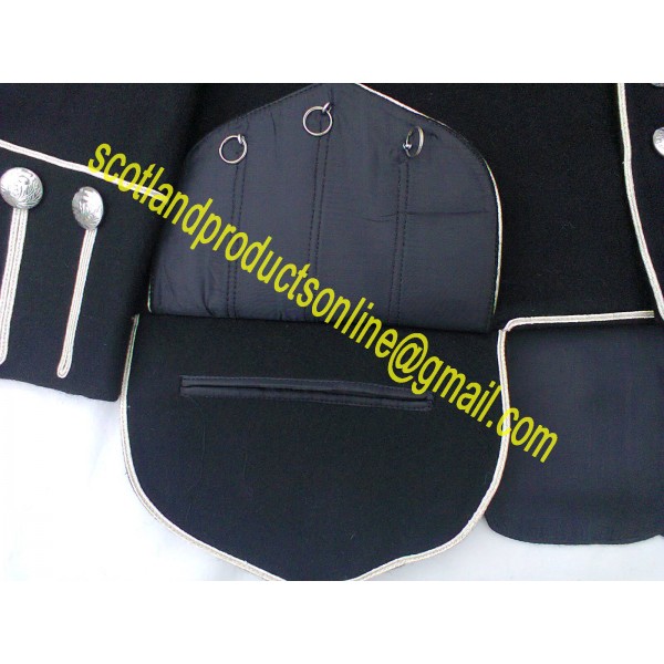 Firefighter/Fire Department Piper/Drummer Black Doublet Jacket made on order with silver/white piping, in different version...