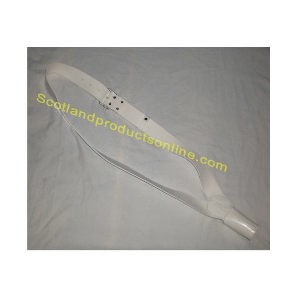 White PVC Marching Flagpole Carrying Belt with silver plated buckle. Good hand made workmanship.