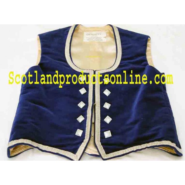 Navy Blue Highland Dancing Vest made in good quality velvet fabric with silver braid and nickle plated thistle diamond shave buttons.