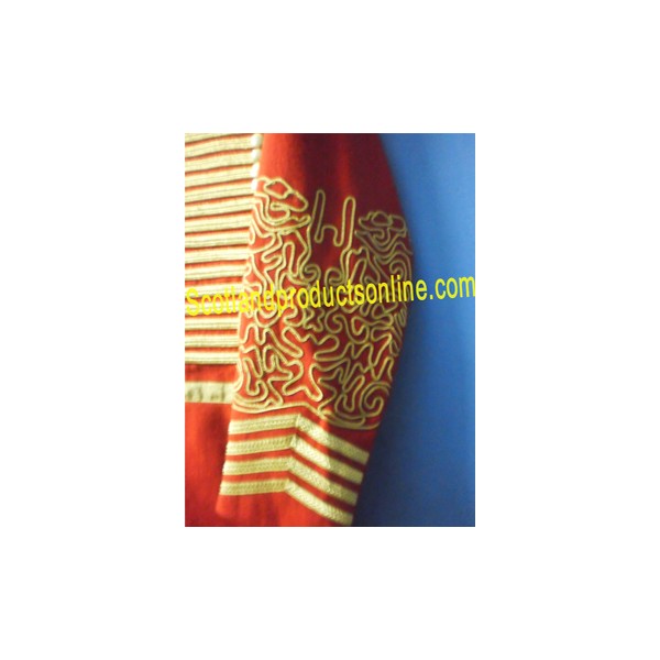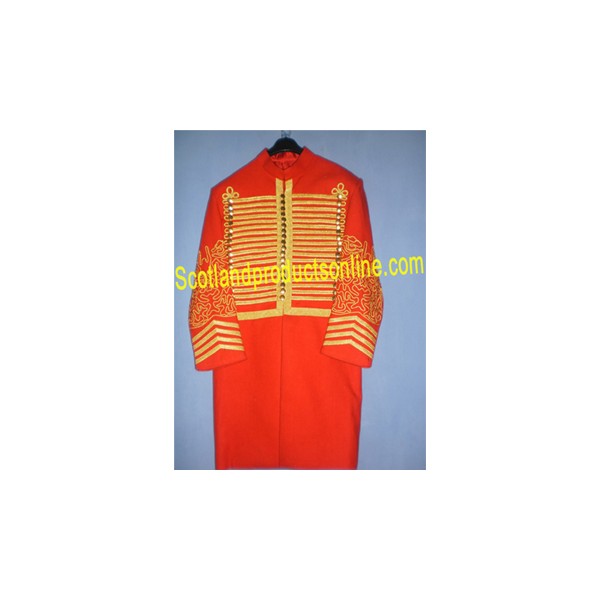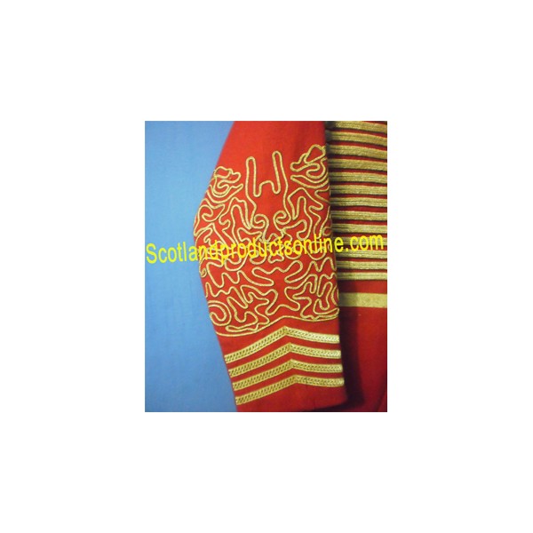 Officer Hussar long coat custom made in red new wool with gold work on cuffs and front. We have also best option available to write Offer name on behind the coat.