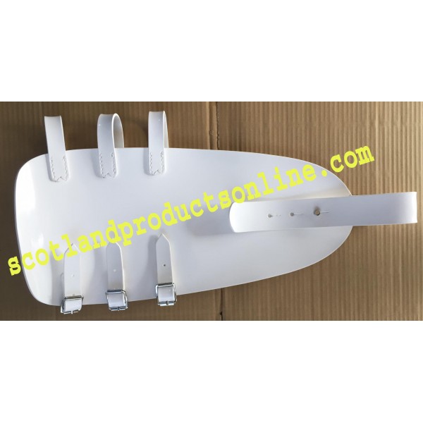 White PVC Marching Drum Leg Apron/Pad with nickle plated buckles, Good hand made workmanship.
