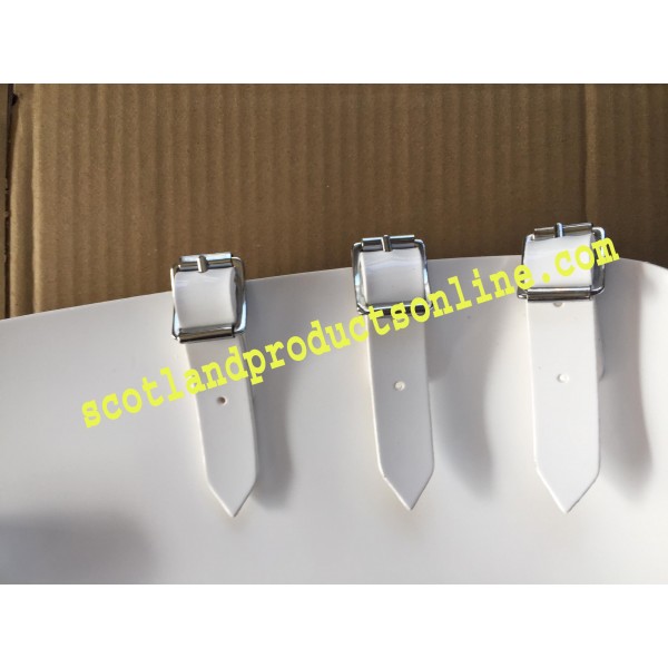 White PVC Marching Drum Leg Apron/Pad with nickle plated buckles...