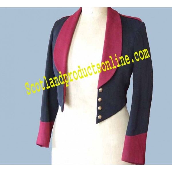 Royal army medical corp officers mess dress jacket in dark navy blue with maroon collar and cuffs...
