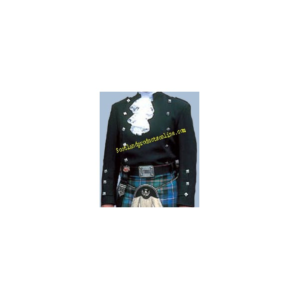 Montrose Doublet is a double breasted short cut evening jacket with high collar. There are ten symmetrically positioned thistle buttons on front, three thistle buttons on each cuff and epaulettes with thistle buttons on each shoulder.