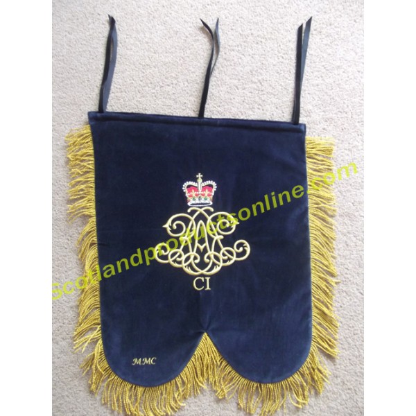 Pipe Banner navy blue blazer backgroud with gold color wire custom hand embroidery "Regiment" badge and gold fringe.