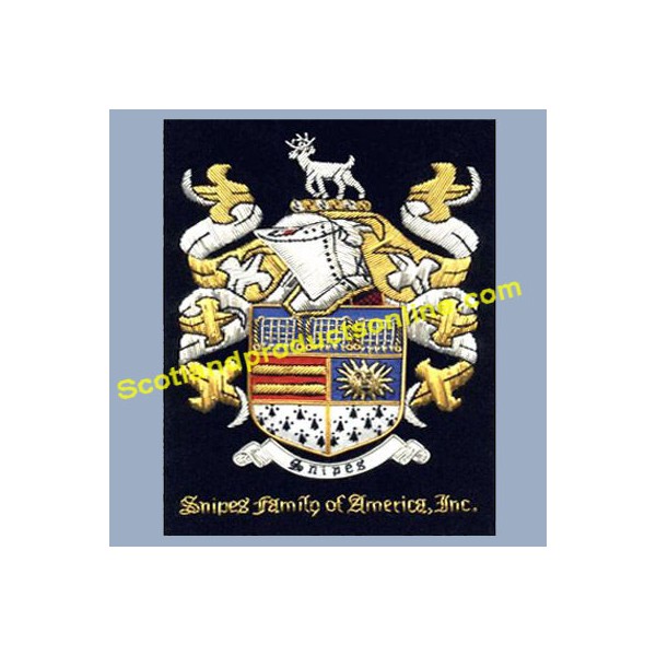 Family Crest Pocket Badge full hand embroidered made in quality wire.