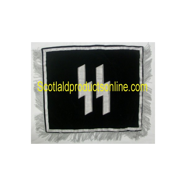 Reproduction German '4th SS Standarte', Trumpet Banner, 20"" x 18"" silver bullion/ black velvet with silver fringe.
