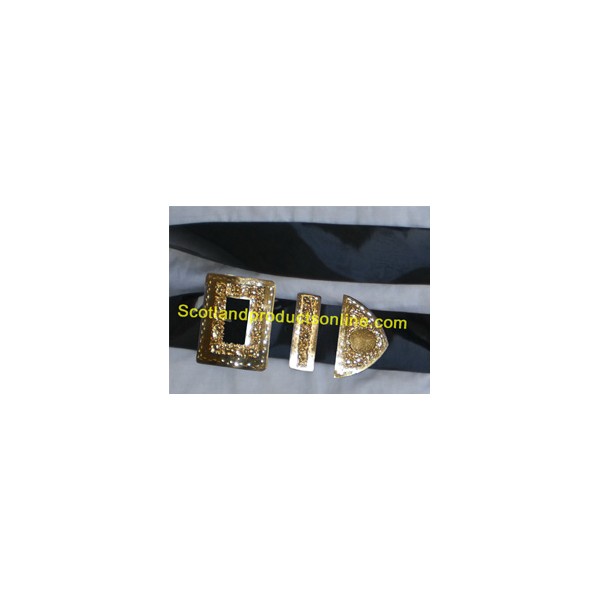 Black PVC Military Piper Cross Belt With Gold Buckles