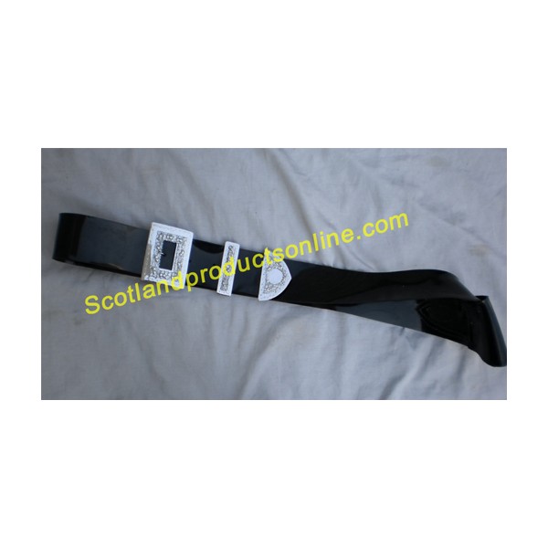 Black PVC Military Piper Cross Belt With Silver Buckles